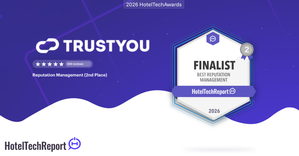 We’re excited to announce that TrustYou has ranked #2 globally on Hotel Tech Report’s Global Best in Reputation Management list in the 2026 HotelTechAwards. The HotelTechAwards are produced by Hotel Tech Report, the leading authority on hotel software and digital transformation in the hotel industry. The HotelTechAwards rank the world’s best hotel software companies and products based on authentic, timely reviews from real users.